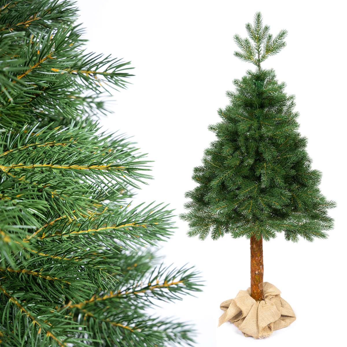 Wyjątkowa sztuczna choinka na pniu, która doskonale imituje prawdziwe drzewko leśne. Wykonana z wysokiej jakości igieł PE (polietylen), zachwyca swoim realistycznym wyglądem i dbałością o każdy detal. Umieszczona na stylowym, drewnianym pniu – przyciąga wzrok i dodaje wnętrzu naturalnego, skandynawskiego klimatu.