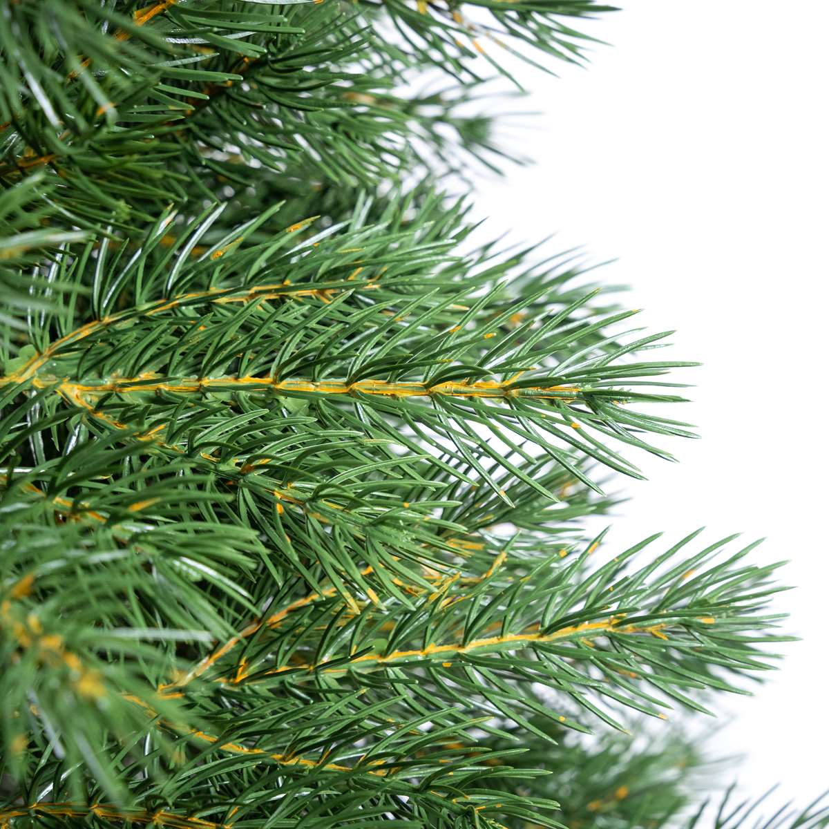 Gałązki choinki są starannie owinięte zieloną nitką, co wzmacnia ich konstrukcję, zapobiega odkształceniom i utrzymuje gęsty, schludny wygląd drzewka przez wiele sezonów.