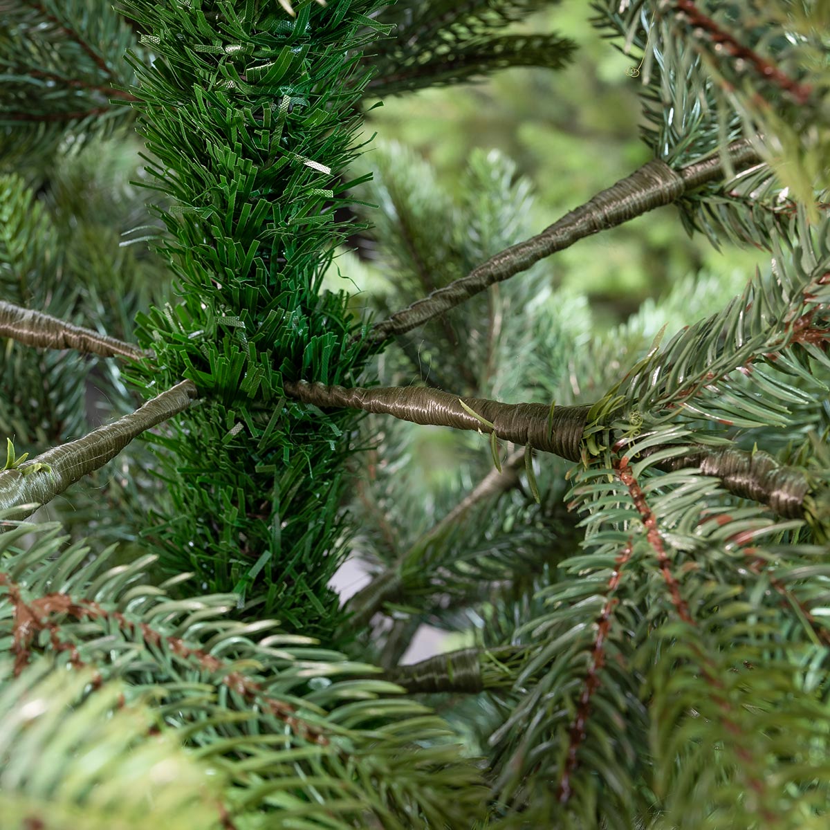 Gałązki choinki są starannie owinięte zieloną nitką, co wzmacnia ich konstrukcję, zapobiega odkształceniom i utrzymuje gęsty, schludny wygląd drzewka przez wiele sezonów.
