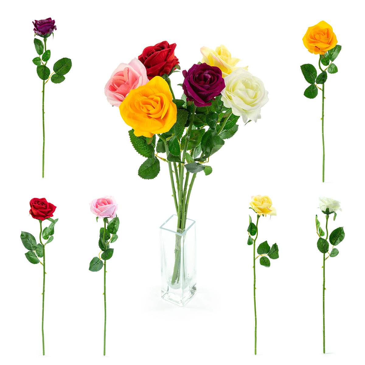 Róża o średnicy 8 cm dostępna w pakiecie 48 sztuk lub 384 sztuk, każdy pakiet zawiera mix kolorów kwiatów.
